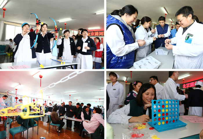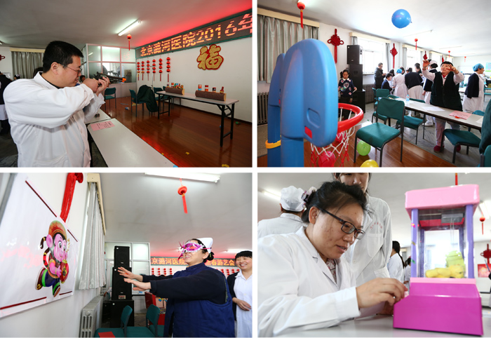 羊歌盛世方报捷,猴舞新春又呈祥。中国传统节日新春佳节来临之际,我院工会举办了2016年春节游艺活动。活动当天,医院大会议室被装扮一新,耀眼的福字,红红的灯笼,处处洋溢着欢乐祥和的喜庆气氛。金猴送福、四宫数读、灌篮高手、水上套圈、打地鼠、平衡木……工作之余前来参加游艺活动的职工们在14个趣味横生的游艺项目上各显身手。本次游艺活动融益智性、趣味性、娱乐性为一体,不仅让职工在工作之余放松了身心,促进了彼此的沟通,同时也丰富了他们的文化生活,展现了医院职工善于思考,热爱生活,充满激情的健康精神风貌。