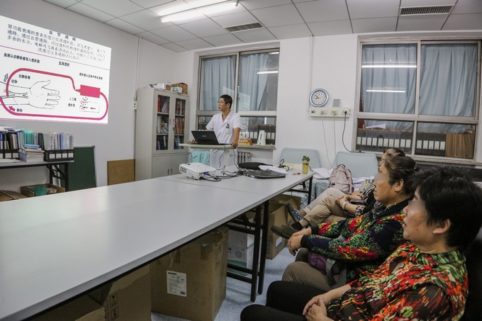 目前我院血液净化中心有长期透析患者230余人,人数还在逐年递增。为了提高患者的生活质量,减少透析并发症,使患者满足生存需要之后能更有尊严地生活,自2010年开始,我院血液净化中心开展了对患者及家属的健康宣教工作。几年来,宣教人数达到近千人次。医护人员除了对患者做一对一的宣教外,还利用中午休息时间,给患者及家属讲解健康科普知识,如:低钾饮食、低磷饮食、营养问题、如何控制干体重、内瘘的护理与维护、高血压的防治、如何改善贫血等,与患者及家属互动,提高了他们的防病意识,这种健康教育活动形式受到了患者和家属的好评。
