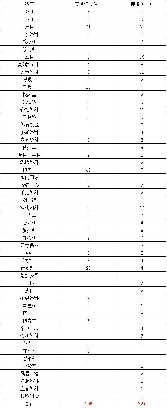 下一篇: 2020年第三季度收到感谢信、锦旗等表扬的…