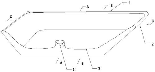 优选的,所述底部的边缘中间位置设有支撑凸起,所述支撑凸起朝上的一面上设有圆弧形的支撑槽,当患者坐卧于所述垫本体内时,所述支撑槽能够容纳并托起男性患者的阴囊部。