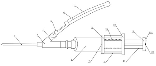 摘要: 本实用新型公开了一种深静脉Y型穿刺置管组件,包括穿刺针、Y型接头、导丝、导丝支架、注射器和导管,注射器包括注射管和注射杆,注射杆可来回运动的设置在注射管调节口一端,且注射杆端部设有固定连接且用于按压的按压板,注射管上设有凸缘,注射管上还设有可形变且用于用户在使用时手指插入限位支撑的第一支撑带,按压板上设有可形变且用于用户将注射杆向外拉动时对手指进行限位支撑的第二支撑带;接通过手指的运动,即可实现了注射杆的来回运动,实现注射器的抽吸和推送的功能,在使用的时候,不需要用户像传统的方式,需要改变手对注射器的握住姿势,去分别实现注射器的抽吸和推送,更加的方便。