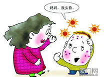 2.发热出疹期要卧床休息,给病儿多喝水,并供给营养丰富、容易消化的食物如牛奶、鸡蛋、水果、蔬菜等,饮绿豆汤、银花露、小麦汤、粥等。忌吃辛辣、鱼虾等食物。