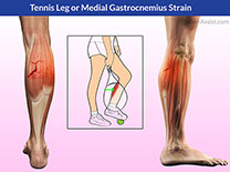 网球腿也叫腓肠肌损伤,是跖肌和腓肠肌内侧头的损伤,多为小腿肌肉强力收缩或拉伸的间接暴力伤所致,常发生于网球、羽毛球等运动时。