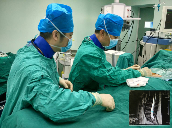 我院骨中心脊柱外科自2015年12月开展“低温等离子射频消融治疗颈、腰椎间盘突出症”以来,已取得了良好的临床效果和社会效益。6个月共收治57例患者,其中颈椎11例,腰椎46例, 2个节段以上的患者14例,有效率达96%(VAS疼痛评分)。经随访(术后3个月MRI证实)椎间盘纤维环撕裂修复率87%(MRI高信号消失或变淡),椎间盘高度无明显丢失,无一例感染和症状加重。在此基础上,还实施了“切开固定减压术”与“相邻节段间盘射频术”,混搭的方法避免了多节段固定而带来的“腰椎僵硬”并发症,目前已完成了6例,临床效果良好。这项技术的应用填补了我院脊柱外科微创手术的空白,为我院脊柱微创的发展打下了一个良好的基础,为大量开放手术提供了理论基础和实操能力的基础。
