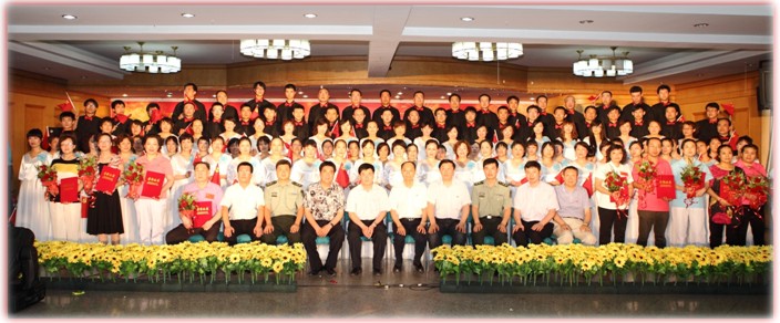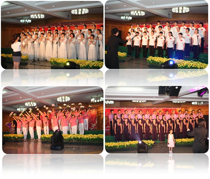 为隆重纪念中国共产党建党90周年,歌颂党的丰功伟绩,重温党的光辉历程,弘扬爱国主义精神,在医院党委的高度重视下,6月29日,潞河医院工会精心组织了“颂歌献党 携手筑和谐”大合唱比赛,党委书记马月明、院长马春光等医院领导应邀观看比赛,比赛以全体演职人员一曲慷慨激昂的《没有共产党就没有新中国》拉开帷幕。来自全院各分工会的合唱节目精彩纷呈,比赛曲目包括《我和我的祖国》、《走向复兴》、《跟着共产党走》、《歌唱祖国》等二十余首红色歌曲,演员们用嘹亮的歌声抒发了潞河医院广大职工的爱党情怀,表达了他们对党生日的美好祝福。本次合唱比赛是近年来医院参与人数最多,规模最大的一次唱红歌大赛,比赛得到了全院各科主任、护士长和支部书记的大力支持和参与。为了保证节目质量,各分会主席积极组织筹备,演员们克服了时间紧、工作忙等困难,利用业余时间积极参加排练。为了使比赛做到公平、公正,医院工会专门聘请了专业老师为各支参赛队伍评比打分,最终药剂科分会、手术室麻醉科分会分别获得了比赛一等奖。医院的离退休老干部们也不示弱,他们不顾天气炎热,为职工们分别演唱了《我和我的祖国》、《你是灯塔》两首红色歌曲。来自总参谋部陆航部通信站的士兵们还为职工们友情出演了《听党指挥》,战士们嘹亮的歌声、整齐的动作令职工们赞叹不已。最后,医院“潞河之声”合唱团表演的歌曲《潞河之声》、《清风吹来的时候》和《山丹丹开花红艳艳》把本次合唱比赛推向了高潮。本次的“颂歌献党 携手筑和谐”大合唱比赛,不仅为党的90岁生日增添了喜庆气氛,同时也为提高职工的文化素养,增加职工团队的凝聚力发挥了积极作用。