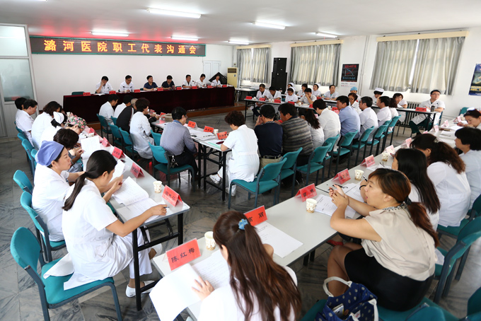 为充分发挥职工代表大会的作用,使职工代表能够及时了解和掌握对医院发展建设所提意见和建议的落实情况,让广大职工真正参与到医院的民主管理,近日,医院工会组织召开了第三届二次职工暨会员代表大会提案、意见和建议落实情况沟通会,会议由医院党委副书记杜会山主持,职工代表组长、院工会委员、分工会主席、提案审理委员会成员、提案人、提案和意见、建议涉及的相关科室负责人、医院领导班子成员参加了会议。