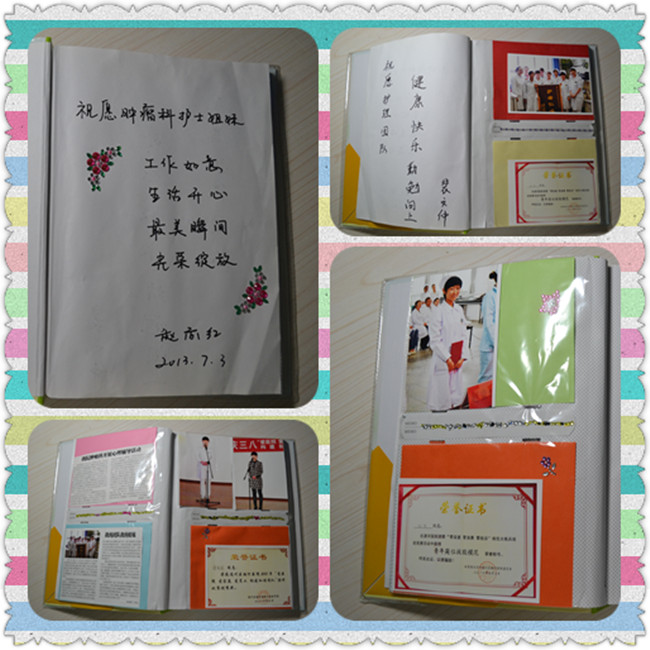 在这本册子中,有着每个白衣天使灿烂欢乐的脸庞;有着科室参加医院活动的荣誉;有着展现科室的记录。那一张张照片,一行行文字,诠释一个科室护理成长过程。那些记录不仅是回忆,同样也是推动我们前进的动力。