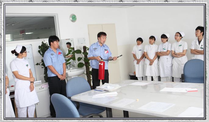 由于医院工作的特殊性,不能集中职工进行安全知识培训,我院保卫科根据院内的实际情况,将保卫科的专职消防员分成6组,每组2人,在早晨各科室交班的时候,利用约5分钟的时间为医务人员进行消防安全知识培训。培训内容包括:楼内现有消防设施的介绍;灭火器的使用;消防栓的使用;起火后如何快速有序地疏散和逃生。专职消防员们的讲解通俗易懂,医务人员在短短几分钟内就了解了楼内现有消防设施及灭火器材的使用。