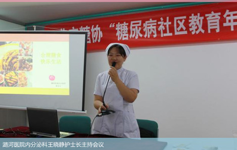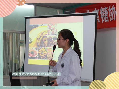 通州分会场的活动主题为“合理膳食、快乐生活”,活动的内容由糖尿病饮食知识讲座以及专家点评病友搭配一日三餐的互动节目组成。糖尿病饮食知识讲座由潞河医院内分泌科医生张宝玉主讲,她将糖尿病饮食知识结合食物模型通俗易懂地讲解,娓娓道来,并积极引导患者参与,现场气氛非常活跃。