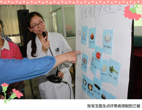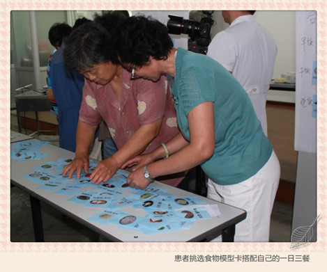 在互动节目中,病友们分别从食物模型卡片中挑出自己经常吃的食物,并根据自己的饮食习惯来搭配一日三餐,之后由专家给予点评和指导。这个互动节目让参与患者的不良饮食习惯及时得到纠正,让患者受益匪浅。