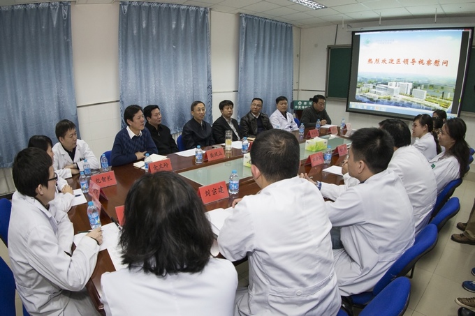 杨书记一行首先参观了我院中美神经科学研究所动物饲养间、动物手术室、动物行为学评测室、康复锻炼室、分子生物学、细胞生物学、显微成像等实验平台,对研究所的建设及取得的成绩给予了充分的肯定与赞许。 随后与医院科技工作者进行了座谈。会上,杨书记分别听取了神经内科主任兼中美神经科学研究所主任杜会山、内分泌科主任兼糖尿病研究所主任赵冬汇报研究所建设使用情况;与会人员结合各自的工作实际,就如何将所学知识运用到实际;如何立足本职、奉献临床;积极研究科研,将学术研究推向世界,使学科发展进入更高的平台畅谈了自己的感想。大家一致表示,在今后的工作中要更加努力,充分发挥特长,扎实做好本职工作,不断为通州区医疗卫生事业的发展、北京城市副中心的发展做出应有的贡献,不辜负区委、区政府的期望。