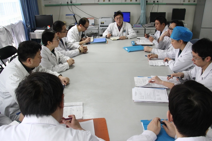翁主任就一位急性重症胰腺炎、感染性休克的患者为例进行了教学查房及病例讨论。结合病历,翁主任利用自己渊博的知识、精彩的语言和深厚的教学功底,以一问一答的互动交流方式详细地进行了病例特点分析。教学查房结束后,还有一些医生仍围在翁主任身边进行请教,使大家受益匪浅。此种教学查房,不仅加深了我院急救医疗部下属重症医学科、急诊、EICU之间的交流,同时也对我院年轻医师掌握正确的查房知识,提高业务水平起到了积极的作用。