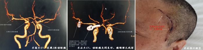 家住通州的曹女士因突发剧烈头疼伴频繁恶心呕吐于今年3月来到我院急诊就诊,经头颅CT检查显示:蛛网膜下腔出血。曹女士收入院后,进一步行头颈部CTA检查,结果显示颅内动脉瘤。动脉瘤相当于颅内血管上的炸弹,普通人长一个动脉瘤就不得了,处理起来相当麻烦。而曹女士的颅内竟然发现了三枚动脉瘤,且动脉瘤的形态已经极度不规则,随时可能再次破裂出血,所以应该尽快手术治疗。