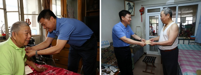 七一建党节前夕,医院党委组织开展了走访慰问活动。党委书记纪福民、纪委书记全俊亚带领有关科室人员先后到我院得到市委、区委组织部慰问的困难党员家中进行了走访慰问,将上级党组织给予的慰问金和慰问品送到困难党员手中,并代表医院党委对他们致以节日的问候和祝福,为他们送去了党组织的温暖和关怀。同时,结合“两学一做”学习教育工作中关于亮明党员身份的倡议,党委书记纪福民亲手为接受慰问的老党员佩戴了党徽,进一步增强了老党员的荣誉感,增加了党组织的凝聚力。