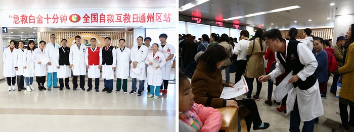 10月10日是我国第七届“急救白金十分钟——全国自救互救日”, 今年的主题是“生命的拥抱——识别窒息,解除呼吸道梗阻”。“急救白金十分钟,全国自救互救活动日”创立于2010年10月10日10时10分,目的是向大众宣传普及急救知识和技能,降低意外伤病死亡率、减少致残率。我院是北京51家宣传医院之一,自去年起是通州唯一一家参加急救白金十分钟联盟的医院。活动当天上午10点10分,我院急诊急救部和保健科组织10余名医护人员在门诊综合楼二层大厅开展了相关主题活动,向就医患者和家属普及急救相关常识,并发放急救宣传资料500余份。副院长李晓辉参加了活动。