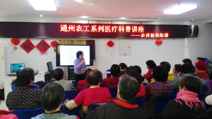 2月10日,在农工党北京市通州区工委一支部副主委,我院皮肤主任郑玲玲的带领下,部分农工党员来到通州区新华街道进行健康科普讲座,开始了通州区农工党系列医疗科普讲堂2017年第一讲。我院中医科曲丹副主任、皮肤科许丽娟副主任医师和新华医院张秀娟主任就中医与血脂健康、皮肤肿瘤与皮肤镜、高血压药物治疗及注意事项三个方面进行讲解。讲课结束后,几位医生还为参加讲座的50多位居民进行了义诊,详细解答了大家的问题。今年,我院农工党党员将在“健康科普”之路上继续前行,发挥我们的专业优势,努力为社会和百姓做好服务,不断发扬不求回报的大爱精神!