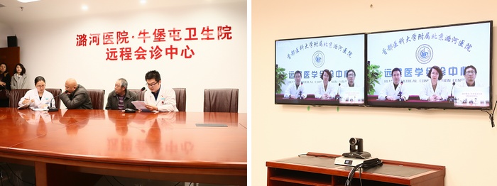 近日,在院长纪智礼的带领下,我院一行16人来到张家湾镇前南关村开展了“潞河医院——张家湾健康行”活动。在镇政府的大力支持下,我院医护人员现场为近百人量血压、测血糖,开展科普宣教两场,指导村民关注健康微信平台,并在牛堡屯卫生院为两名病情复杂的患者进行了与医院本部专家面对面的远程会诊。会诊过程中,专家们首先听取了牛堡屯卫生院主治医生关于患者的病情介绍,然后向患者进一步询问症状体征,最后给出了会诊意见和详细的治疗方案,并指导了患者后续居家康复的注意事项。