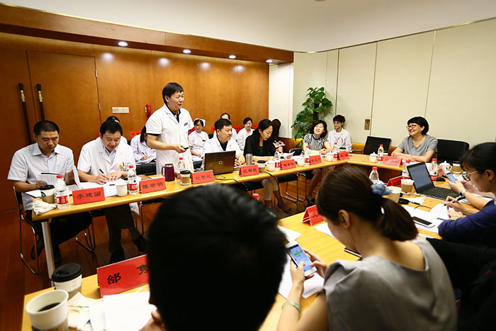 最后,市医管局副局长潘苏彦对我院工作给予了充分肯定,她强调,“百年潞河”的历史传承给其留下了深刻印象,特别是潞河医院开展的“以器官系统为基础,以疾病为核心”的学科改革更体现了“以病人为中心”的宗旨;同时对于通州区疾病样本库建设工作给予了高度评价,此项工作的开展为今后的教学科研发展打下了坚实的基础。潘局长最后指出,将我院纳入“医学学科协同创新工作”的发展中心建设队伍,目的是共同提升学科建设,实现医院学科跨越式发展。