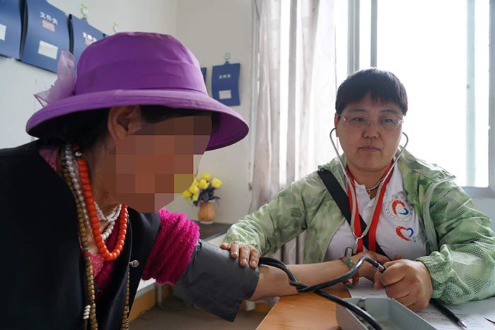7月7日,在党委副书记杜会山的带领下,由我院呼吸与危重症医学科副主任张淑明、妇产科副主任马红梅、心内科副主任张立新、普外科副主任医师刘勇组成的医疗队奔赴西藏自治区波密县参加了“同心·共铸中国心”大型公益活动。高原反应,连绵阴雨,局部山洪、泥石流……这些困难丝毫没有难倒进藏的同志们。由于当地通往墨脱县的公路被泥石流阻挡,我院医疗队临时被安排到波密县玉许乡进行义诊活动。群山环绕的玉许乡位于西藏自治区波密县西北部,距离波密县城有大约两小时的车程。由于地理位置的偏僻与卫生水平的偏低,使得这个如世外桃源般的小镇缺乏相应的医疗资源,许多民众的身体健康得不到保障。
