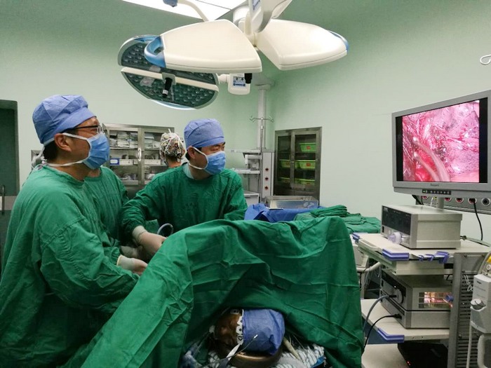 我院自引进胸腔镜技术以来,已成功施行了胸膜活检、肺大疱切除、急诊胸外伤探查、凝固性血胸清除、脓胸清除、胸腹腔镜联合食管癌切除等多项手术,此次的全胸腔镜肺癌根治手术是高水平胸外科技术标准之一,这项手术的独立开展,标志着我院胸外科在肺外科领域已拥有全部微创化手术技术。