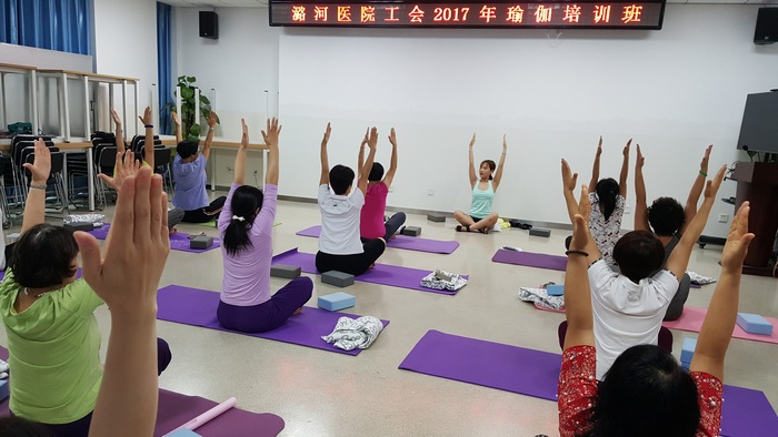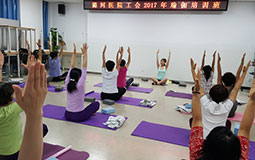 为促进职工身心健康,丰富职工业余文化生活,在医院党委的大力支持下,我院工会举办的2017年瑜伽培训班正式开课啦!该项时尚而健康的健身活动自2013年首次开班以来受到了医院职工的一致好评。本次培训共有130名职工报名参加,将分6个班次完成全部教学练习。职工们在瑜伽老师的指导带领下,一招一式,气定神闲,尽情舒缓身心,陶冶情操。参加培训的职工们纷纷表示,感谢医院工会为她们提供的健身运动平台,通过参加瑜伽练习不仅可以让她们放松身心,增进彼此交流,同时也使她们拥有了更健康的身体和健美的身材,有利于她们培养乐观向上的积极心态,以更加饱满的热情投入到医院的各项工作中。