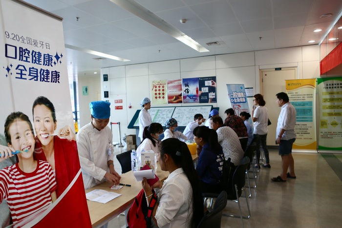 9月20日是第29个全国爱牙日,世界卫生组织将口腔健康列为人体健康的十大标准之一,口腔健康与全身健康密切相关。爱牙日当天,我院口腔颌面中心在门诊综合楼二层大厅举办了口腔义诊活动,口腔专科医生们现场为广大群众免费口腔检查,并且针对每个人的口腔情况在检查后给予了详细的治疗及保健的建议。随着医疗技术的逐步提高,三级分科也越来越细,针对我院口腔颌面中心专科细化分类,患者不知道如何挂号就诊的问题,医生也做了详细的解答,告诉患者各个专科的诊治特长以及出诊时间,并且帮助患者进行相关专科的预约,得到了患者的好评。针对很多人因为害怕看牙而拒绝就医,医护人员们也向他们介绍了我院新开展的无痛微创治疗,笑气镇静的舒适口腔医疗特色。