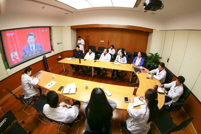 10月18日上午9时,举世瞩目的中国共产党第十九次全国代表大会在京隆重召开,我院班子成员、党支部书记一起收看了本次大会的开幕盛况,仔细聆听了习近平总书记代表第十八届中央委员会所作的重要报告。大家一致认为,报告求真务实、振奋人心,为党和国家事业的新发展绘制了美好前景,具体到医疗卫生工作也指明了前进方向,报告中提出的实施健康中国战略,充分体现了党中央对全国人民群众健康的高度重视。