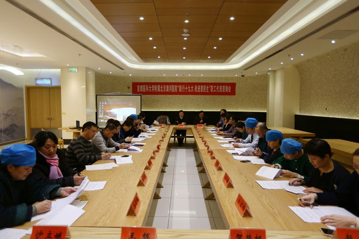 为深入贯彻落实党的十九大会议精神,促进医院职工食堂更好地为广大职工提供用餐保证,发挥职工代表的民主管理和民主监督作用,近日,我院工会组织召开了“践行十九大 改进惠民生”职工代表质询会。