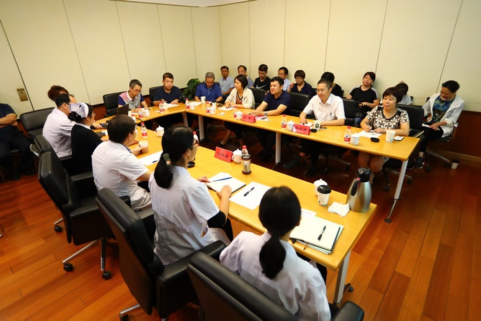 座谈会上,我院院长纪智礼介绍了潞河医院百年历史及发展愿景、战略和模式,并从医疗、教学、科研、防病、经营管理、人才培养及文化建设等方面介绍了医院的发展概况,特别是我院开展的器官系统学科改革及未来发展计划。交流过程中,针对马腾副院长、张亚通副院长及医务科辛向东科长提出的如何看待教学工作、人才引进、临床路径及单病种付费等问题,纪院长给予一一解答。随后,代表团成员与我院对应职能科室、临床科室负责同志结队实地参观业务开展情况,并进行深入交流。