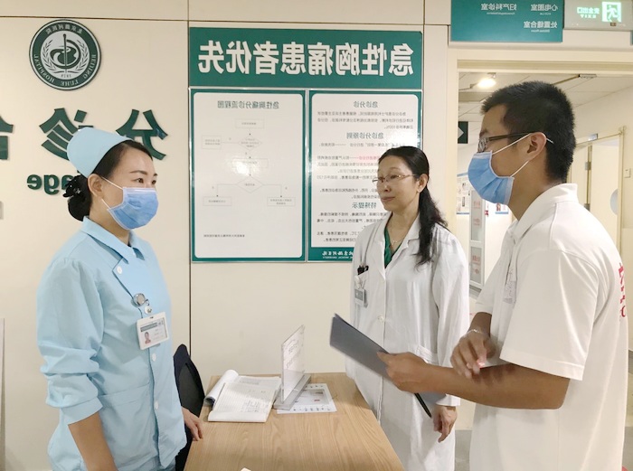 7月27日上午,疾控科会同通州区疾控中心工作人员进行了汛期传染病防控工作巡查。检查人员深入眼科门诊、消化科门诊、皮肤科门诊、儿科门诊、急诊科、感染性疾病科肠道门诊、肝炎门诊进行了实地查看。询问医务人员近期门诊量是否有异常增多情况;与预检分诊人员和临床医生进行了深入交流,详细询问了近期因发热、腹泻、皮疹、结膜红肿、黄疸、呕吐等症状就诊的患者中是否有流行病学史的关联病例,以及发现关联病例如何处置、上报;急诊预检分诊人员遇到可疑关联病例如何分诊、处置。督导后,疾控中心工作人员对我院的传染病防控工作给予了充分肯定,并提示继续做好关联性病例监测工作;严格按传染病疫情报告要求进行疫情报告;规范处置有关肠道和自然疫源性传染病;开展汛期传染病防控应急演练,确保相关人员熟练掌握应急处置流程。