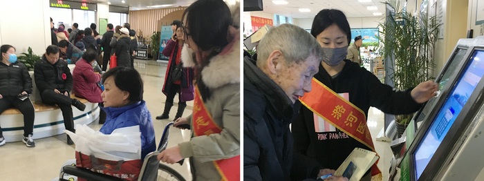 针对医院日门诊量较大,挂号、缴费、问询的患者较多的特点,此次志愿服务活动岗位主要设置在门急诊大厅内。门诊楼B1层、1层、2层自助机处全天均设有志愿者,协助患者自助挂号、缴费、打印检查报告,减少窗口排队等候时间,同时为患者进行简单的咨询和指引服务;药房志愿者在取药窗口协助患者刷卡登记、取药,避免患者排空队,让患者用最短的时间拿到药;环境巡查志愿者巡视医院门诊、住院楼每个角落,及时制止吸烟人员;行风督查志愿者在工作人员的带领下,来到人流密集的门诊大厅,对患者进行满意度测评,认真记录患者提出的每一条意见和建议,加强医患沟通;儿童中心志愿者指引患儿家长及时就医、进行各种检查等,缓解家长焦急的情绪。