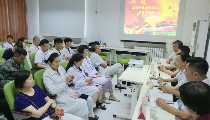 7月17日下午,通州区武装部部长王虎东,我院副院长赵京红、原副院长何永福、医疗部副主任高家义、体检中心主任刘胜利、主检医师张会敏主任及全体参检工作人员参加了此次培训会。按照市级召开的《2019年征兵体检服务标准化试点启动仪式暨征兵体检工作动员部署和业务培训》的工作标准,我院抽调了业务能力强、经验丰富的科室骨干组建征兵业务团队。根据国务院、中央军委关于征兵工作的方针、政策、法规和上级指示要求,按照征兵体检工作的具体措施和实施细则,从政治上、思想上高度重视,秉承廉洁征兵,具体安排部署了本辖区的征兵体检工作。培训会对重点科目及注意事项加以反复强调,全体医务人员签署了《通州区征兵体检工作人员协议书》。