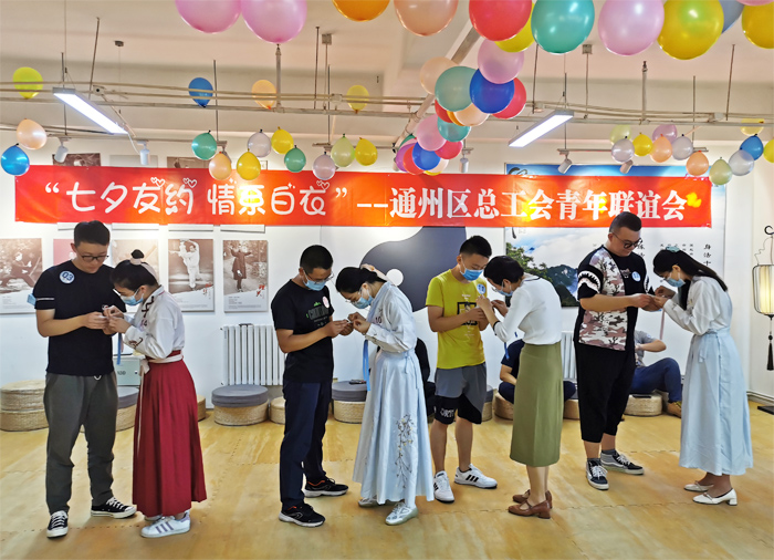 白首成约,终身之盟。为给我院单身青年搭建交友平台,促进职工通过沟通了解得到相识相知,找到心怡的另一半,在中国传统节日七夕节到来之际,我院工会组织医院20余名单身女职工参加了通州区总工会举办的“七夕友约 情系白衣”青年联谊会。本次联谊活动突出中国传统文化特色,职工们不仅体验了汉服的传统文化之美,活动过程中,各种轻松、欢快的游艺活动也分别以中国传统文化为依托,礼尚往来、闻香识人、穿针引线……职工在了解和体验中国传统文化的同时与异性同伴默契配合,加深了对他们的沟通了解。我院女职工们充分展示了作为2020年度最美逆行者的特殊风采和魅力,希望本次联谊活动能够帮助医院的单身女职工早日找到属于自己的美好情缘,争取事业、家庭双丰收。