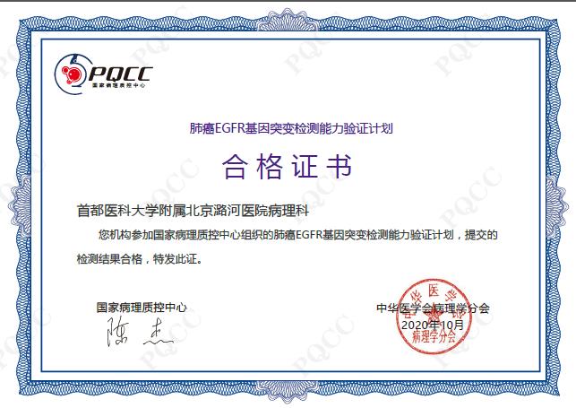 我院病理科喜获2020年度国家病理质控中心基因检测能力验证