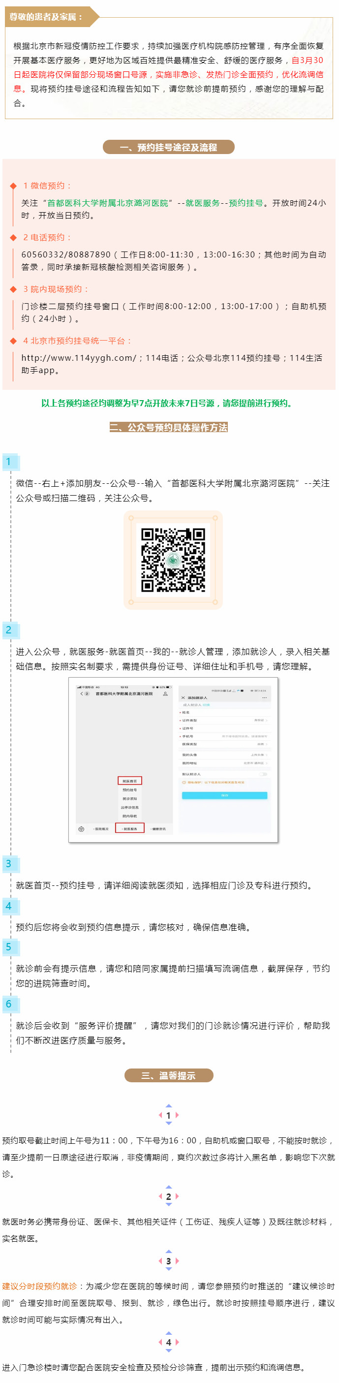 轻轨:八通线通州北苑站、九棵树站下车乘坐公交车潞河医院站下车即到