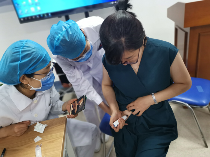 无针注射器在内分泌病房已经应用了6年多,是“医用注射技术的一次革命”,为广大糖友带来了新的注射体验,得到了患者的一致好评。不仅消除了患者对针头的恐惧,也避免了注射划伤、针头折断对人体的危害,降低了感染风险,药液进入皮下能够均匀散开,增加了药物吸收率,有效避免了皮肤硬结的发生。张先生是去年开始用无针注射器的,用了以后空腹血糖一直控制在5左右,糖化数值达标。他说:“我还推荐给邻居大姐用了,她得糖尿病很久了,身上已经有很多硬结块了,肚子上的针孔也是一圈圈的。有了这个无针注射器太好了!”。李阿姨说:“作为一名二十年的一型糖尿病患者,有幸在病房里体验了无针注射器,感觉遇到了救星一样,之前每天打四针胰岛素,光针头就十几块,还扎的青一块,紫一块的,以后再也不用天天扎4针了!”