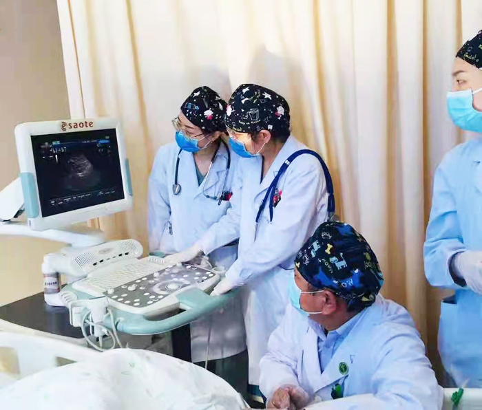 我院全科医学科采用的是超声引导下胃空肠营养管置入的方式,床旁超声可操作性强,减少患者的移动,降低转运风险;同时可以通过在超声下观察胃管置入的位置,通过注气法判断空肠管是否通过食管,减少置入气管的风险;通过渐进式注水法判断空肠管是否通过幽门、十二指肠,更有利于顺利置管,降低耗时,大大提高了置管成功率,更加安全有效。科室通过前期的相关技术学习及超声影像等科室的协助,于2020年3月首次对一位患脑血管病同时伴有胃潴留、反复吸入性肺炎的老年患者进行了床旁超声引导下胃空肠营养管置入,置入过程顺利,置管后患者未再发生呕吐食物现象,营养状况好转,术后患者肺炎很快好转并且出院,患者家属对全科医学科的治疗表示深深的感谢。