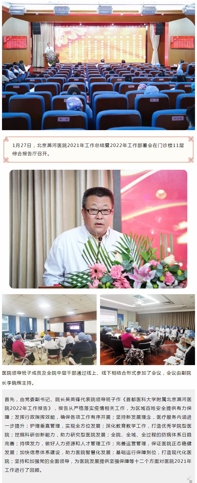 首都医科大学附属北京潞河医院简介 首都医科大学附属北京潞河医院始建于1878年,迄今已有148年历史,现为区域急危重症救治中心、疑难疾病诊治中心、区域医学教育中心和医学科研及防病中心。经过一个多世纪的发展,医院已经成为集医疗、… 详细>>