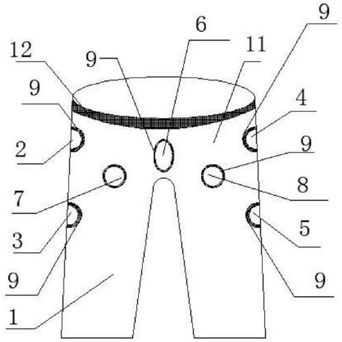 作为一种优选的实施方式,所述裤体的右侧设有沿其长度方向排布的两个所述第一缓冲部;所述裤体的左侧设有沿其长度方向排布的两个所述第二缓冲部。