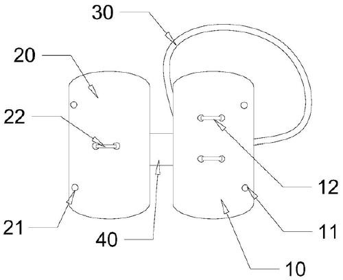 所述内侧部上设置有传感器固定结构,所述外侧部上设置有管线固定结构,所述内侧部和所述外侧部通过翻转对接时在所述内侧部和所述外侧部之间形成容纳空间,所述传感器固定部和所述管线固定部位于所述容纳空间内,所述束缚带位于所述容纳空间外。