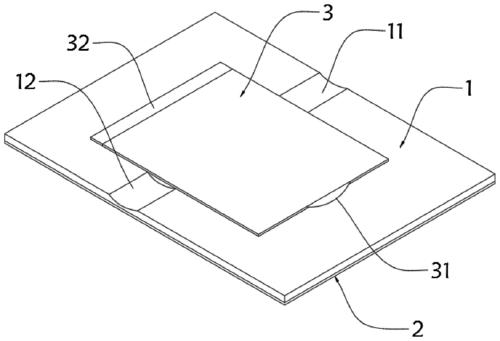 为实现上述目的,本实用新型提供了一种留置尿管固定的装置,包括固定垫,所述固定垫为矩形结构,所述固定垫的底部紧密粘接有粘贴层,所述固定垫的顶部设置有矩形的导管固定贴,所述固定垫的顶部位于导管固定贴的两侧分别开设有第一导管固定槽和第二导管固定槽,所述导管固定贴的一端紧密粘接有连接条,所述连接条远离导管固定贴的一侧与固定垫的顶部表面紧密粘接;所述固定垫的顶部靠近导管固定贴的下方开设有矩形的撕开口,所述撕开口的内部设置有矩形的柔性垫,所述柔性垫的表面两侧对称紧密粘接有第一粘贴带,所述导管固定贴的底面靠近第一粘贴带处紧密粘接有第二粘贴带,所述第二粘贴带的外表面粘贴有离型膜,当离型膜撕开时,所述第一粘贴带与第二粘贴带紧密粘接。