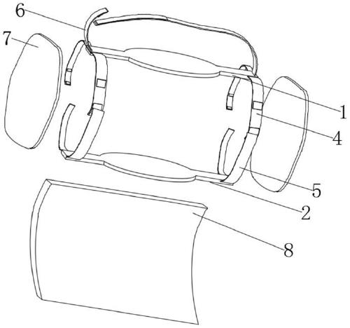 作为上述方案的优化,所述第一架骨体的上端固定连接有两个第三结合带,两个第三结合带沿第一架骨体的长度方向延伸,且两个第三结合带之间也通过魔术贴、摩擦毛面连接。