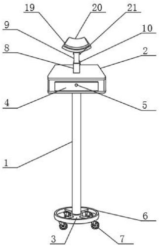 与现有技术相比,本实用新型的有益效果是:本实用新型设计新颖,可同时为患者和医护人员提供便利,在患者使用PICC时,需要进行消毒,在消毒期间可将手臂放于支撑板上,可通过调整第二支杆的高度,来把手臂和床面的夹角调至45°作用,在此期间,不需患者的手臂过多地用力,又便于医护人员操作,以保证良好的消毒效果,减轻了患者的痛苦。