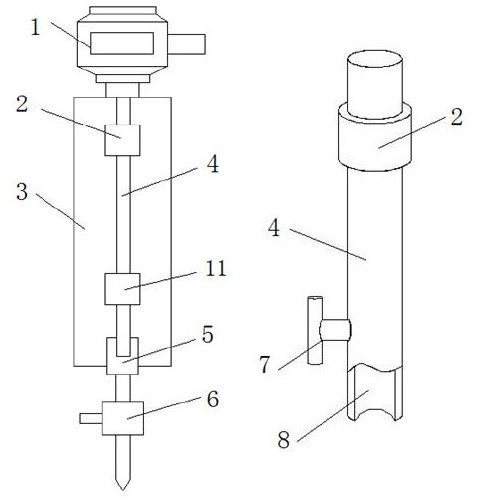 优选的,所述连接杆还有另一种连接方式,即连接杆上同样设置有第一限位器和第二限位器,其连接杆的底部设置有内凹型结构的内凹槽,且连接杆的底部外侧边上设置有锁块,用于固定YL-1型颅内血肿碎吸针。