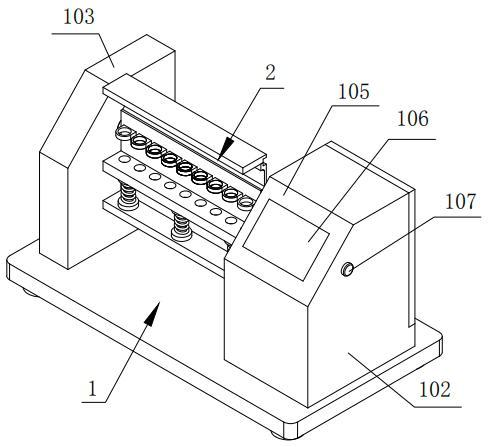 4、本实用新型,在弹性件的作用下使得支撑板具备上下弹性浮动的性能,这样可以防止试管被压碎,从而使得该化验室样品处理装置安全可靠。