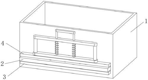优选的,所述滑动板的顶部固定连接有两组连杆,所述连杆的顶部穿过顶板向上延伸并固定连接有把手条,所述连杆上套接有弹簧。