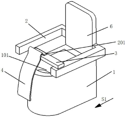 具体的,所述转板上对应所述容纳槽的位置设有翻盖,所述翻盖能够相对所述转板转动,以盖设或开启所述容纳槽;所述遮挡帘与所述翻盖的边缘相连接,且所述遮挡帘能够翻过所述翻盖的边缘向接近座椅的方向落下。