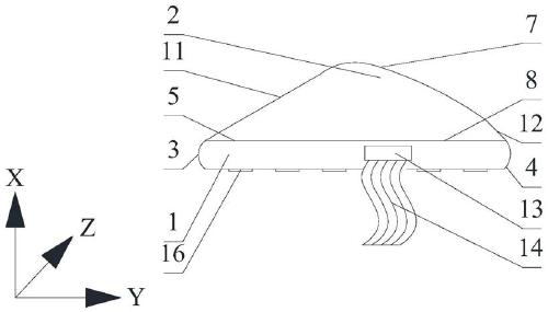 所述底层部为立方体,包括沿第二方向相对设置的第一表面和第二表面,所述第一表面和所述第二表面均为弧形面,所述第一方向与所述第二方向垂直;