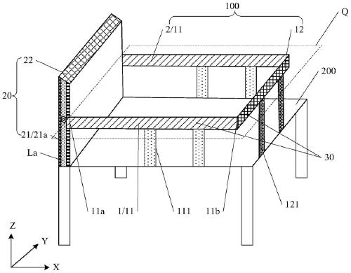 优选的,所述第二横杆包括多个沿所述第三方向延伸的第二防护柱。