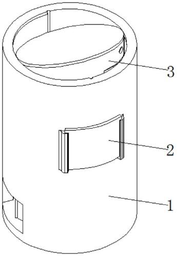 所述存放筒的内弧形侧面在水平直径的两端竖直开设有第一滑动槽,所述第一滑动槽位于通孔中部的上方,所述第一滑动槽的上端面与存放筒的上水平面未齐平。